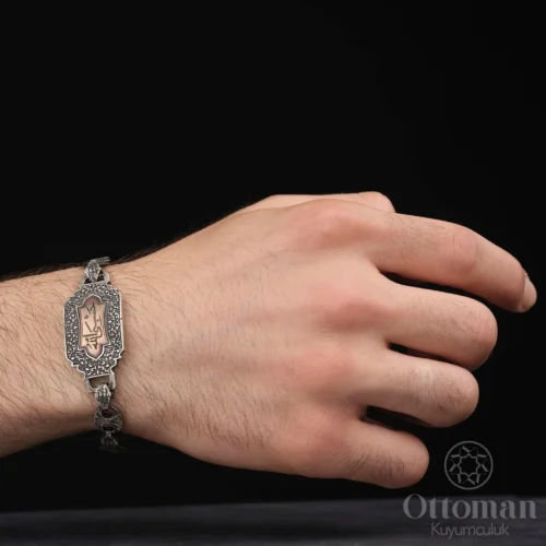 Gümüş üzerine rose kaplama kullanılarak hazırlanan gümüş bileklik modelimize aynı zamanda ‘AYET-EL KÜRSİ’ işlenmiştir.