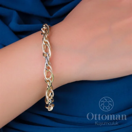 • Sarı Kaplama: Gümüş bilekliğin üzerine uygulanan sarı kaplama, altın etkisi yaratarak bilekliğinize lüks bir görünüm kazandırır. Bu kaplama, bilekliğinizi göz alıcı ve etkileyici hale getirirken, şıklığınızı artırır.