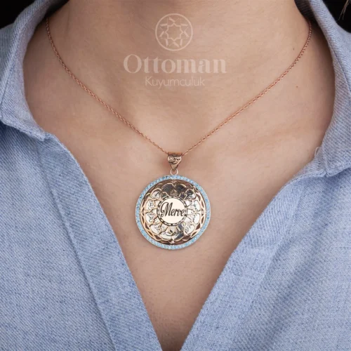 Kolyenin etrafında yer alan Bakara Suresi’nin 286. Ayeti, hem manevi koruma hem de huzur getirir. Bu ayet, İslam dünyasında derin bir anlam taşır ve kişinin ruhsal olarak korunmasına yardımcı olur. Kolyenin bu ayetle süslenmiş olması, kullanıcısına ilahi bir güvence ve manevi huzur sağlar.