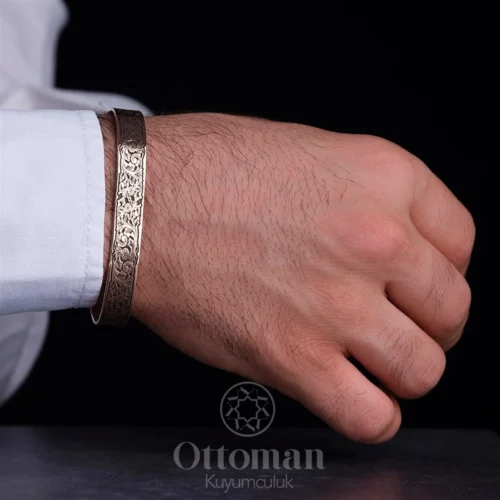 İnşirah Gümüş Erkek Kelepçe Bileklik, göz alıcı bir şıklık sunmak için özel olarak tasarlanmıştır. 925 ayar gümüş üzerine uygulanan rose kaplama, bilekliğe sıcak ve modern bir görünüm kazandırır. Rose kaplama, gümüşün doğal parlaklığını korurken, zarif bir altın tonunda ışıltı sağlar. Bu kaplama, bilekliğin hem günlük hem de özel günlerde şık bir aksesuar olarak kullanılmasını mümkün kılar.