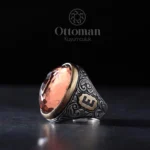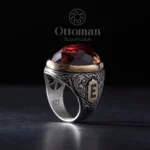 Ürünümüz 925 ayar gümüş olup gravür desenler ile süslenmiş olup yan kısımlara kişiye özel baş harfler işlenmiştir.Üzerine ise ortam ışığına göre renk değiştiren zultanit taşı kullanılmıştır.Ürünün yan kısımlarına kişie öze harf logo tasarımı yapılabilir.
