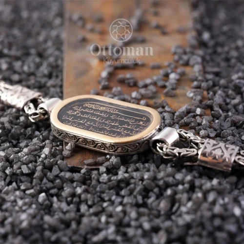 Bilekliğin en dikkat çekici özelliklerinden biri, üzerine işlenen anlamlı yazılardır. “Kördüğüm gibi” ifadesi, derin bir sevgi ve bağlılığı simgeler. Aynı zamanda Osmanlıca olarak işlenen “Allah’ım sen onu değerli kıl” yazısı, manevi bir destek ve dua niteliğindedir. Bu yazılar, bilekliğe sadece görsel bir güzellik değil, aynı zamanda manevi bir derinlik kazandırır.