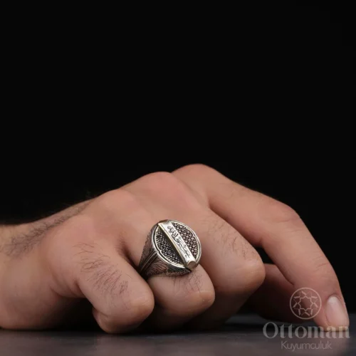 Hasbiyallah Yazılı Çift Renkli Özel Tasarım Gümüş Erkek Yüzük