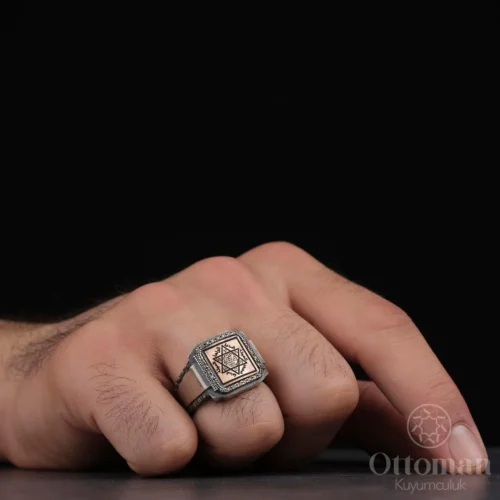 Kare Tasarım Süleyman Mührü Gümüş Yüzük