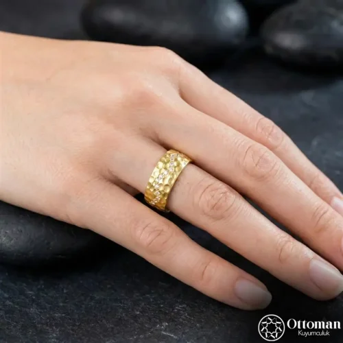Bombeli Gravürlü Gümüş Kadın Alyans