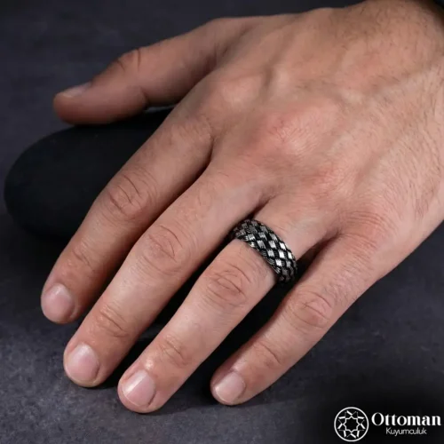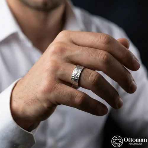 Bombeli Gravürlü Gümüş Erkek Alyans