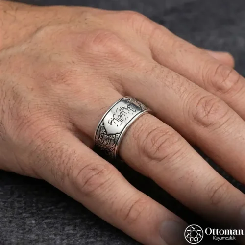 Gravür Desenli İsimli Gümüş Erkek Alyans
