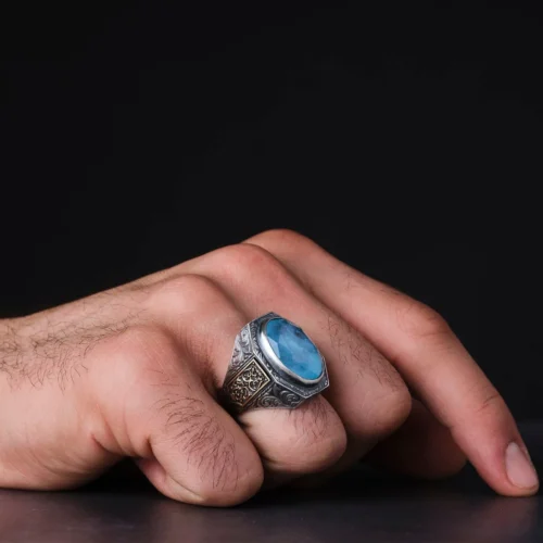 Paraiba Taşlı Gümüş Erkek Yüzük