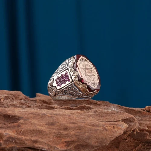 Şah Model Gümüş Kırmızı Taşlı Erkek Yüzük