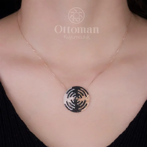 Üstün kalite gümüşten üretilen bu kolye, hem şıklığı hem de dayanıklılığı bir arada sunar. Gümüşün doğal parlaklığı, kolyenin zarif tasarımıyla birleşerek sofistike bir görünüm oluşturur. Modern ve zarif tasarımı, kolyenin her türlü kıyafetle uyum sağlamasına yardımcı olur.