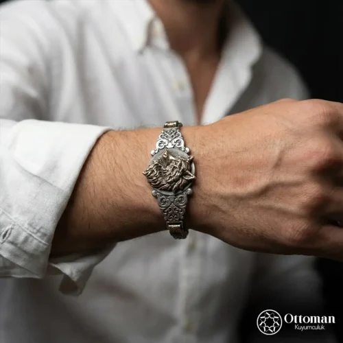 Kurt Figürlü Gümüş Erkek Bileklik