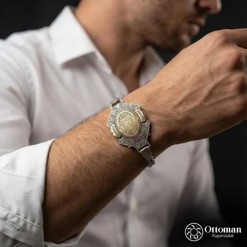 Ayetel Kürsi Yazılı Sarı Kaplama Gümüş Erkek Bileklik