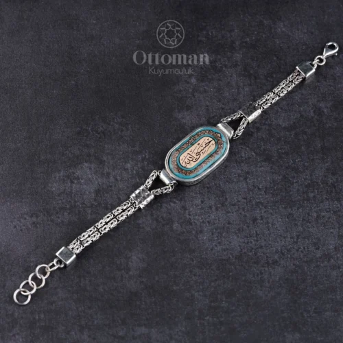 Hasbiyallah Firuze Taşlı Erkek Gümüş Bileklik
