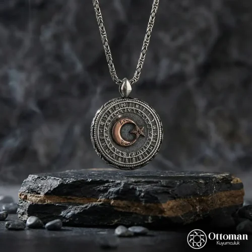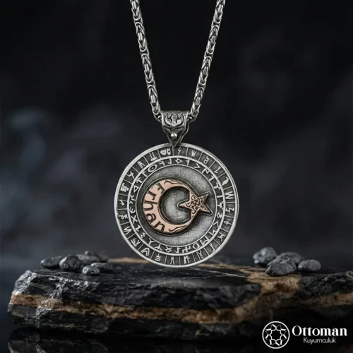 Osmanlı Sancağı Sekizgen Gümüş Madalyon Kolye