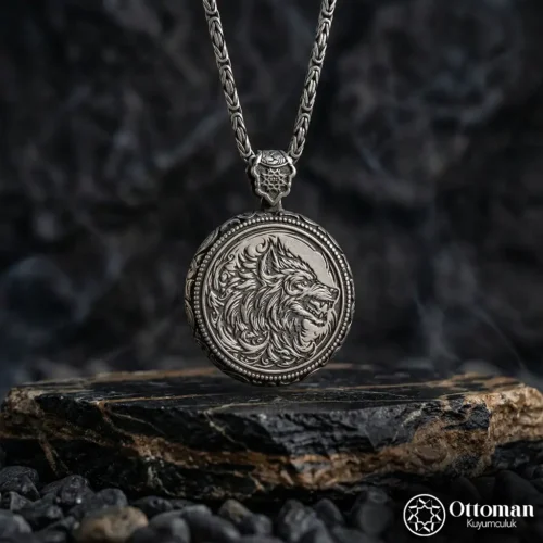 İsimli Aslan Figürlü Gümüş Madalyon Kolye
