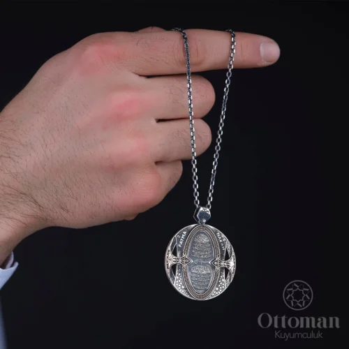 Çift Taraflı Dualı Gümüş Madalyon Kolye