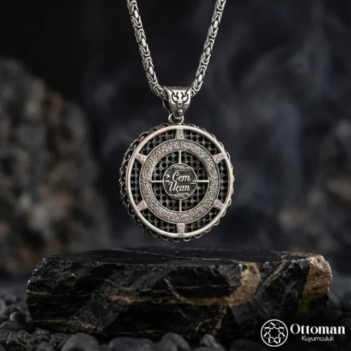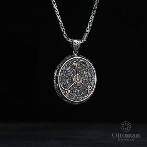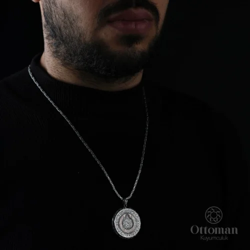 Nas Felak İşlemeli Gümüş Madalyon Kolye