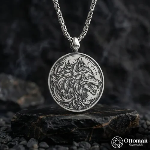 Bozkurt Figürlü Gümüş Erkek Kolye