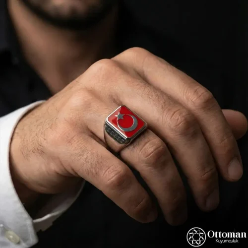 Ay Yıldızlı Kişiye Özel Gümüş Erkek Yüzük