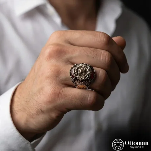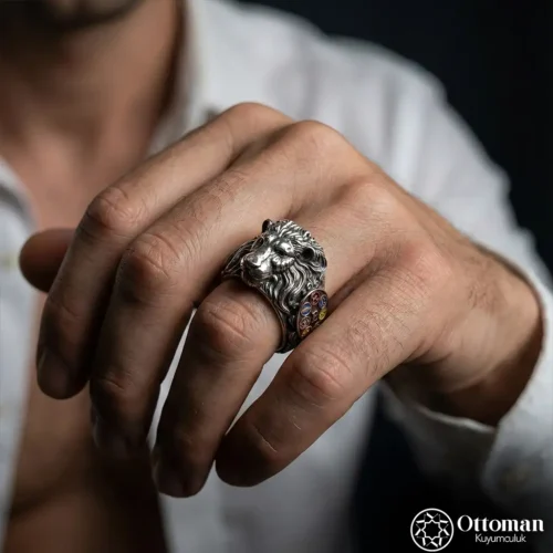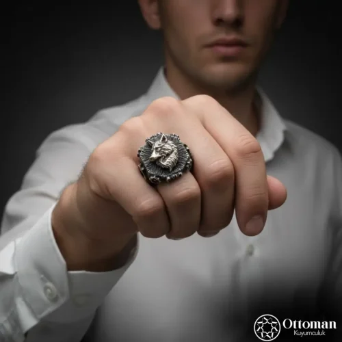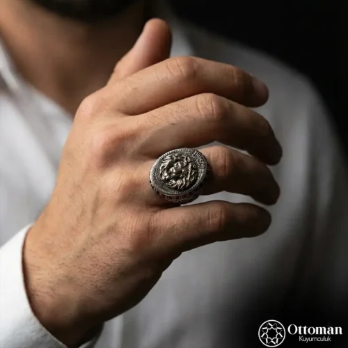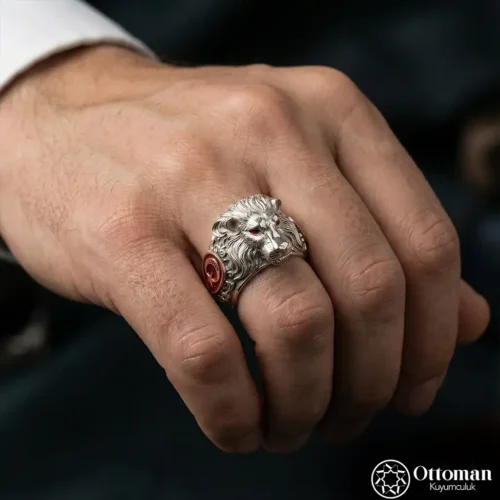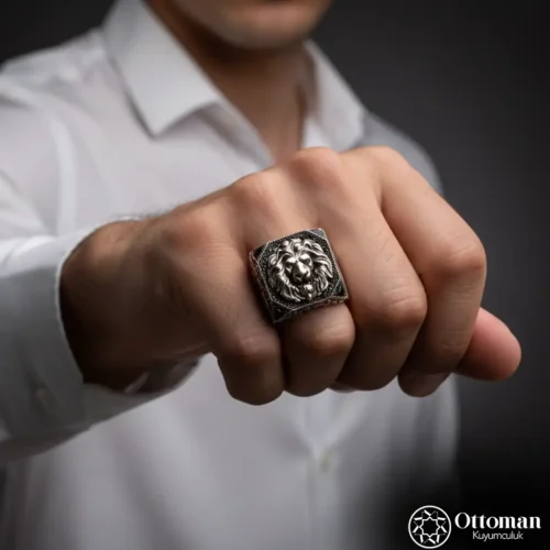 Kişiye Özel İsimli Aslan Figürlü Gümüş Erkek Yüzük