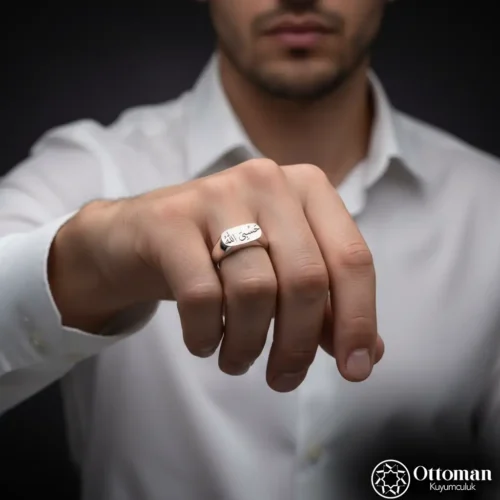 Hasbiyallah Yazılı Gümüş Erkek Yüzük