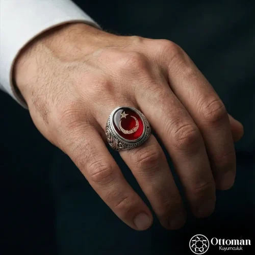 Ay Yıldız Seri Gümüş Erkek Yüzük