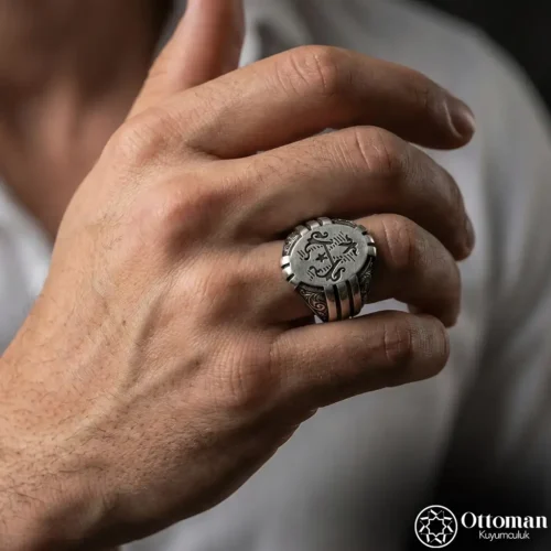 Teşkilatı Mahsusa Motifli Gümüş Erkek Yüzük