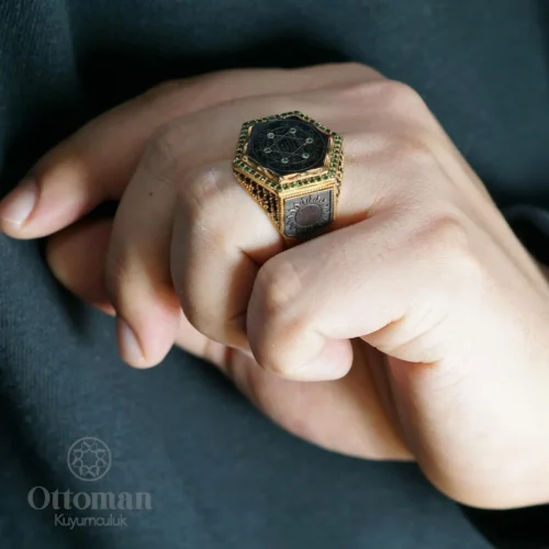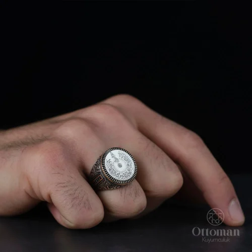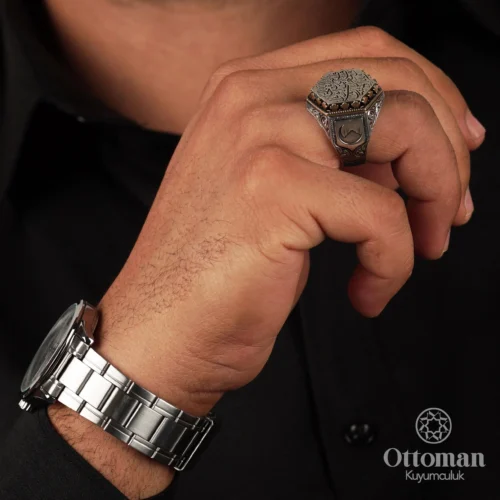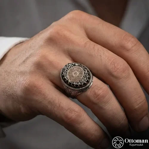 Besmele-i Şerif Yazılı Osmanlı Tuğralı Gümüş Erkek Yüzük