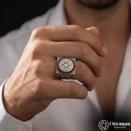 Dikdörtgen Süleyman Mührü Gümüş Erkek Yüzük