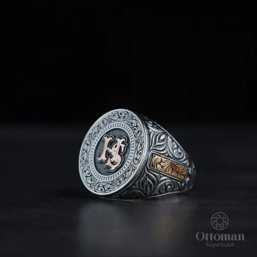 Yeni Zihgir Model Monogram Gümüş Erkek Yüzük