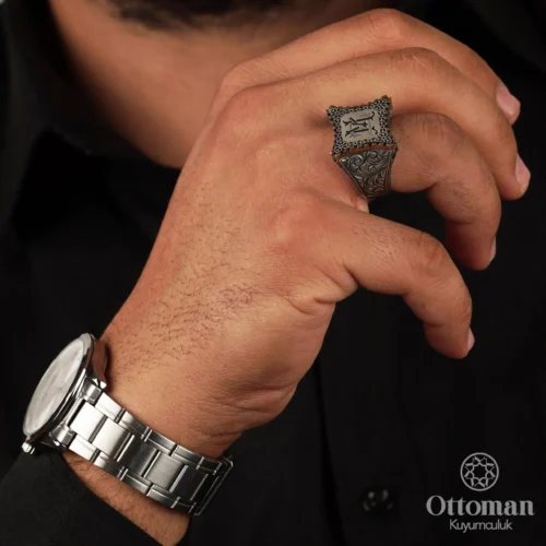 Harf Tasarımlı Gümüş Erkek Yüzük