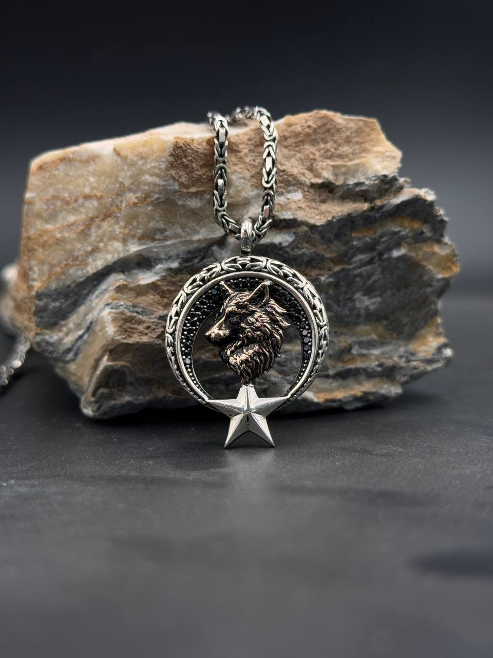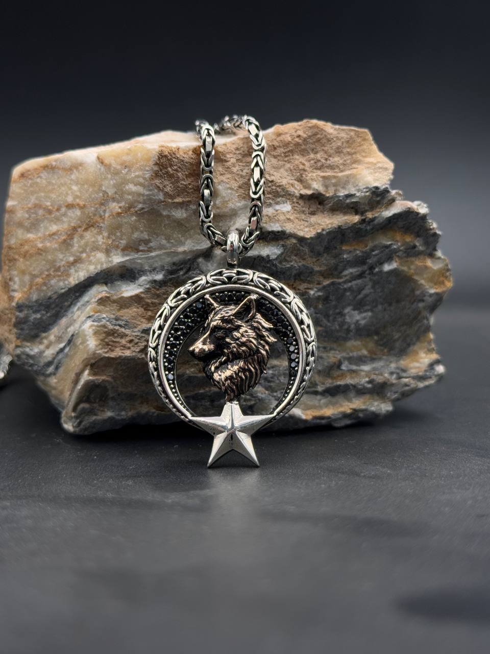 Ayyıldız İşlemeli Mikro Taşlı ve Kurt Özel tasarım kolye