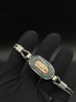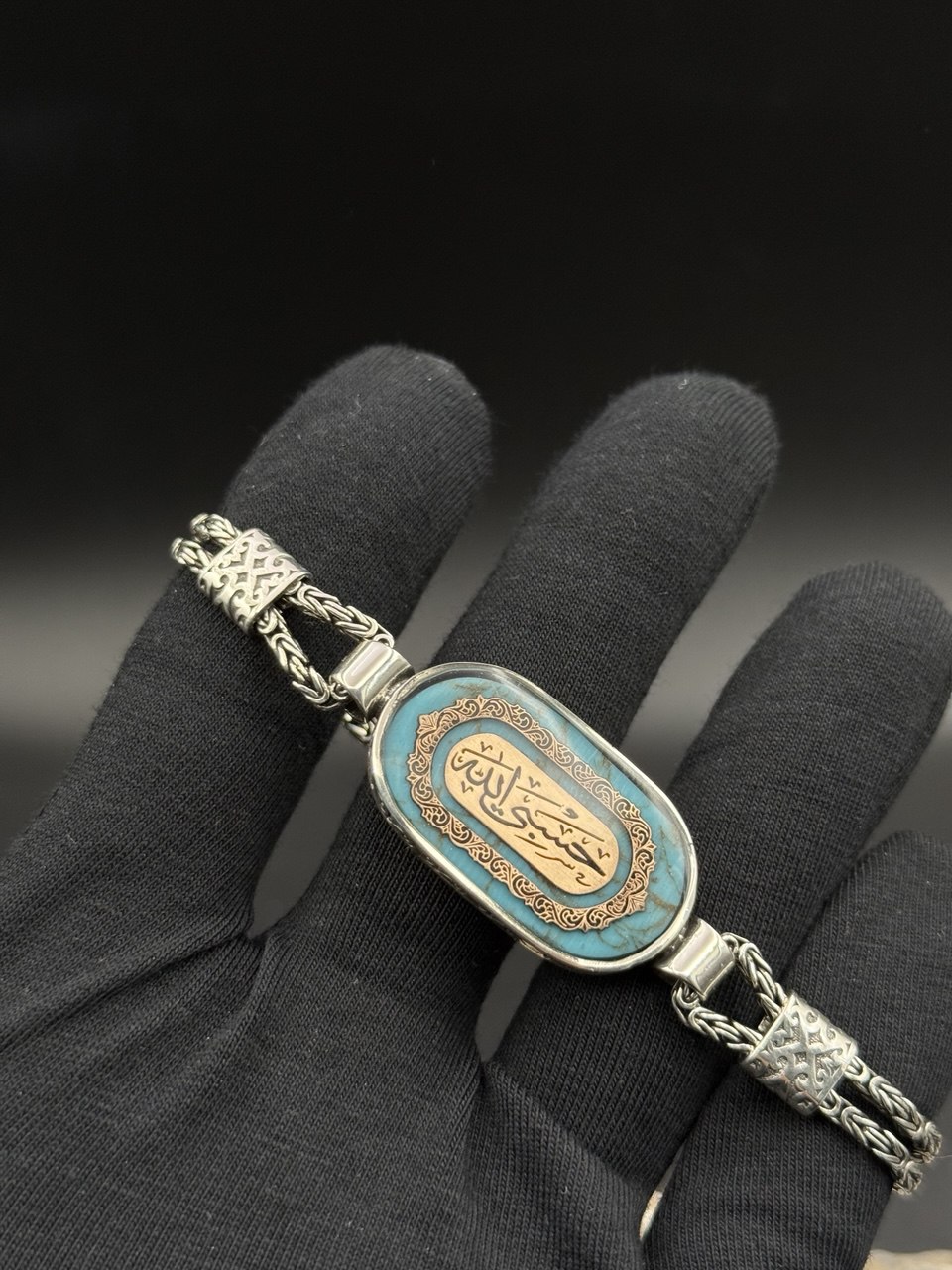 Hasbiyallah Yazılı 925 Ayar Gümüş Firuze Üçlü Set